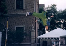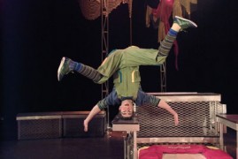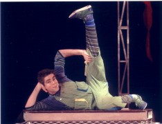 As he changes the channel, the music moves him to a beat, that makes him want to groove, so he decides to stand on his head instead and then spins while he’s at it.