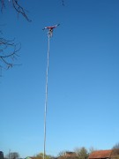 The artist carry out their act at a height 18 meters on a trailer-towed stand-alone unit.
