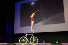 En parfaite harmonie avec son vélo, elle danse, roule, vire et maintient son équilibre avec une aisance irréelle.